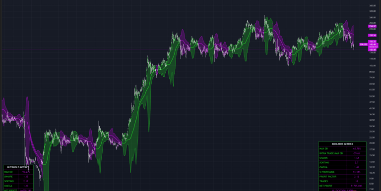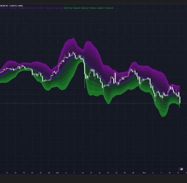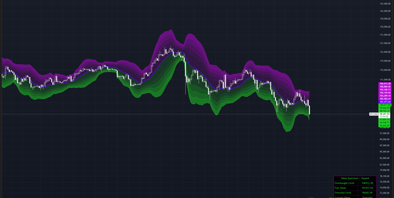 The Value Spectrum indicator is a versatile overlay tool that helps traders visualize price valuation relative to a dynamic baseline.