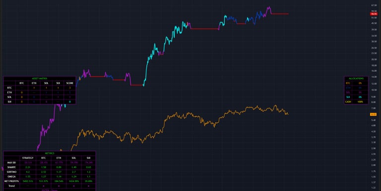 Apex Flow is a dynamic multi-asset rotation and trend-following system designed to identify the strongest trending cryptocurrencies and allocate portfolio exposure accordingly.