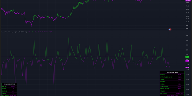 The Robust Scaled HMA indicator is a trend-following tool, leveraging a Hull Moving Average (HMA) with robust statistical scaling.
